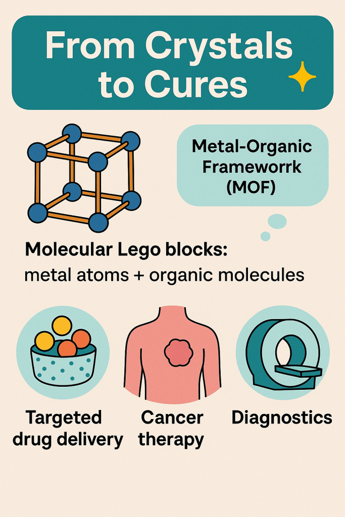 - targeted drug delivery: medicines can be “packed” into MOFs and released exactly where they’re needed,