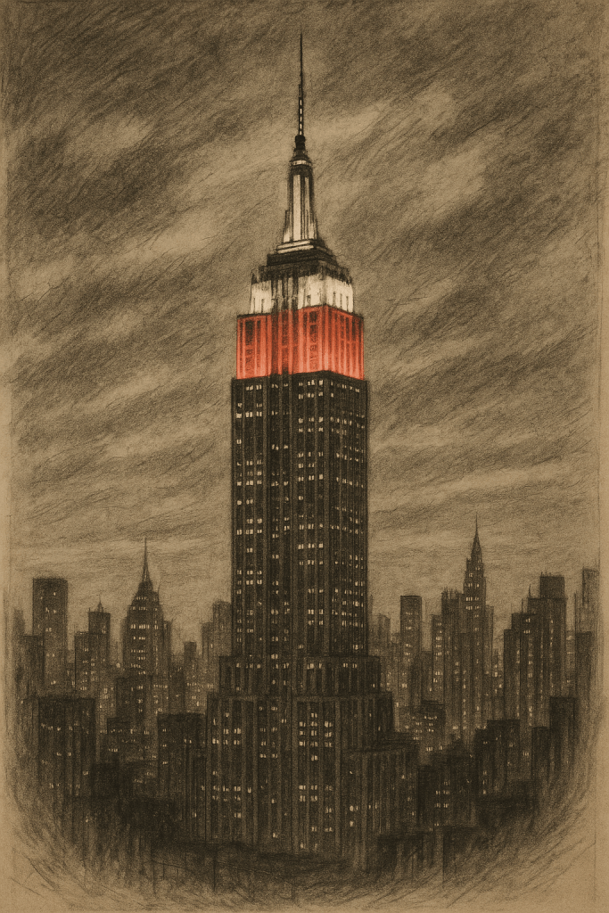 AAnd today, more than a century later, that same spirit still shines — in music, in science, and in sport — reflected tonight in the white-and-red light glowing on the Empire State Building, kindled by Robert Lewandowski.