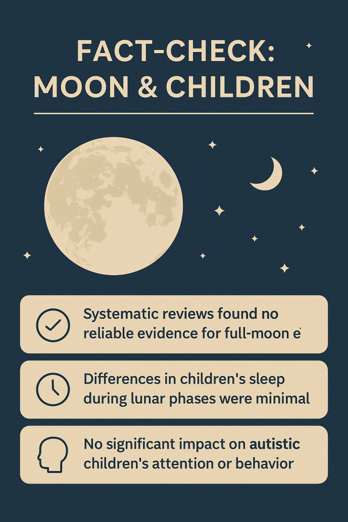 – brak wiarygodnych dowodów na wpływ pełni na koncentrację, energię czy zachowanie dzieci